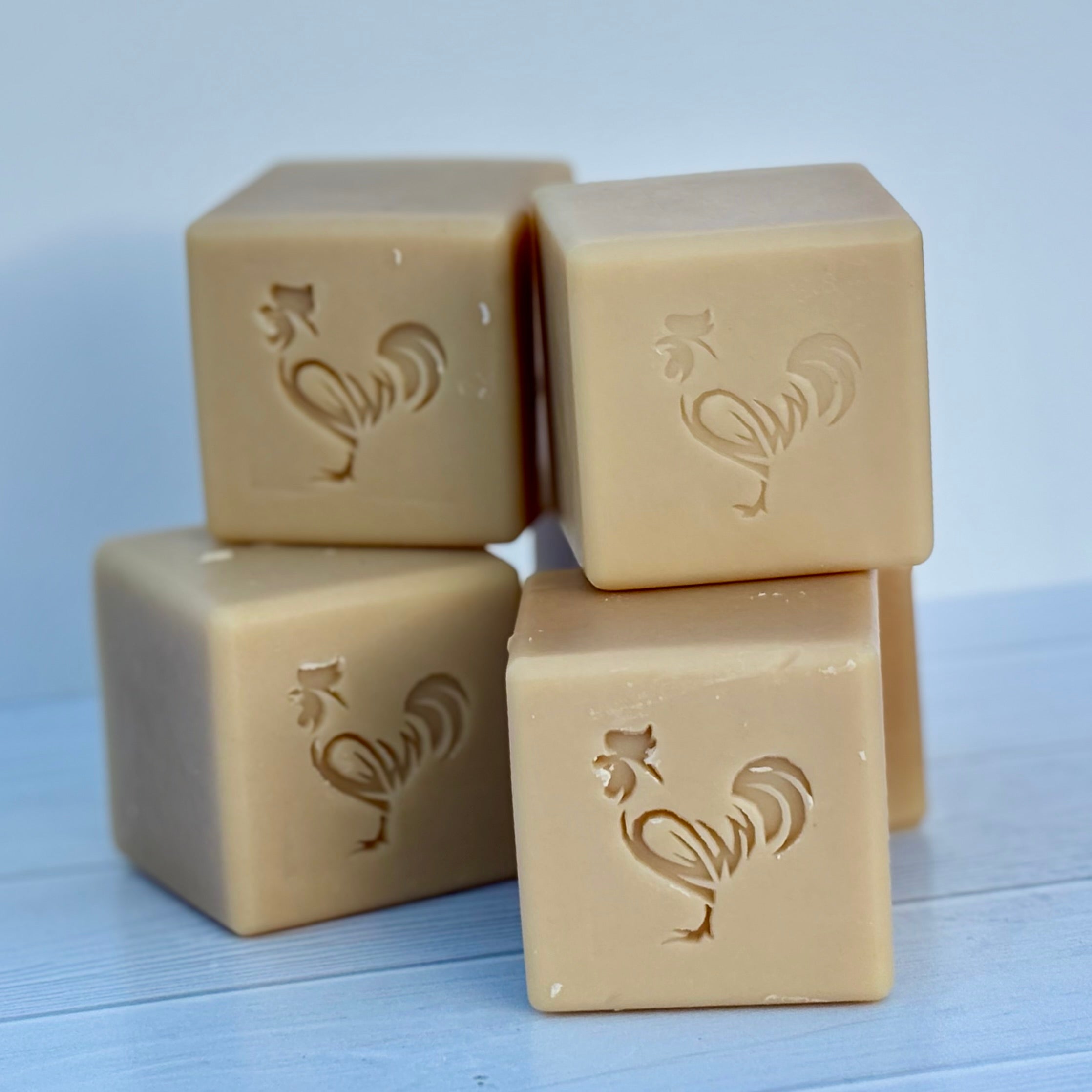 ingredients: calendula infused olive oil, certified sustainable palm oil, aloe vera, sodium hydroxide, cocoa butter, coconut oil, water, shea butter, avocado oil, castor oil, essential oil blend of lavender, geranium, patchouli, colloidal oatmeal, goat milk, Louisiana honey, sodium lactate, tussah silk