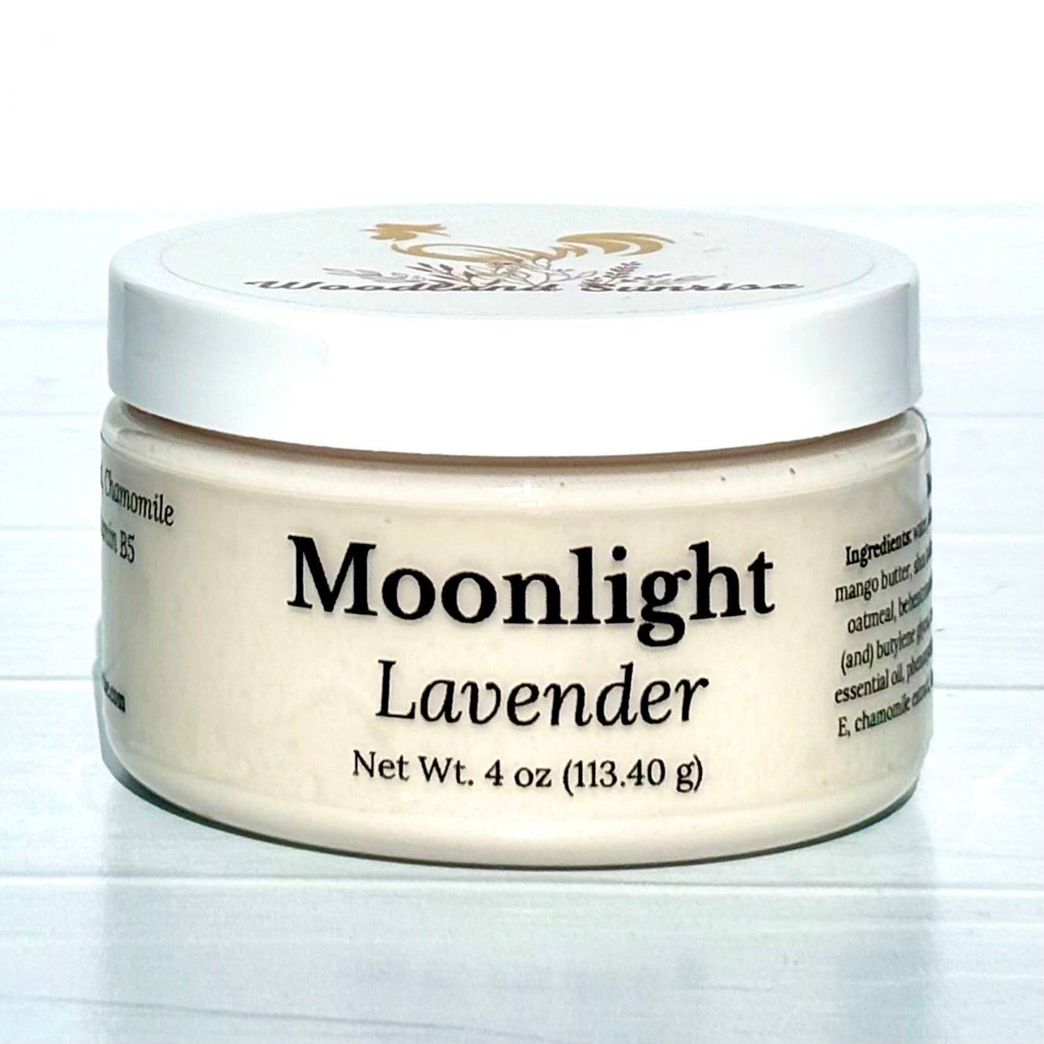Ingredients: water, aloe vera liquid, safflower oil, jojoba oil, mango butter, shea butter, cocoa butter, avocado oil, colloidal oatmeal, behentrimonium methosulfate (and) cetyl alcohol (and) butylene glycol, emulsifying wax NF, glycerin, lavender & patchouli essential oils, phenoxyethanol (and) ethylhexylglycerin, vitamin E, lavender hydrosol, chamomile extract, panthenol, allantoin